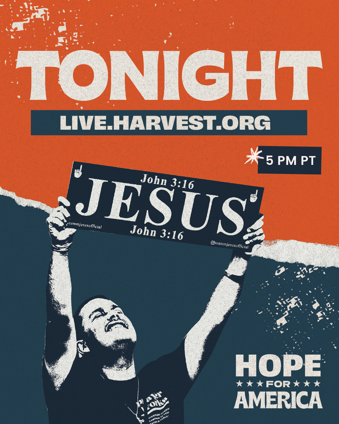 Download the images below to use your platform to share the upcoming Harvest Crusade: Hope for America